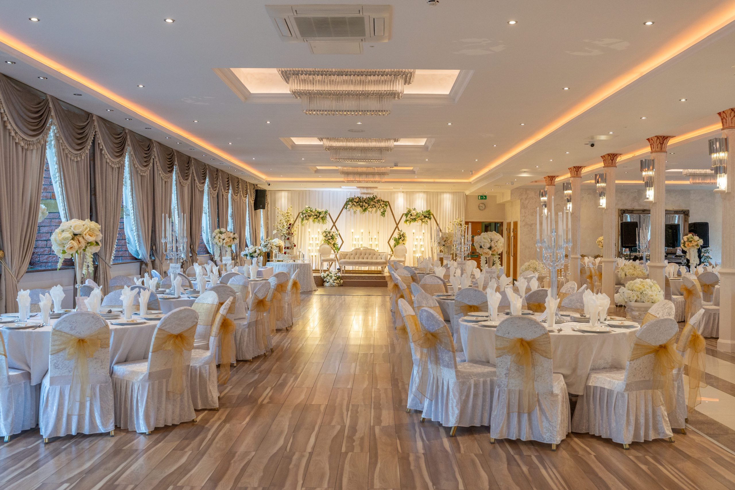 With a capacity of up to 250 guests, this champagne and silver-toned hall is the perfect setting for weddings, engagement parties, corporate events, and milestone celebrations.